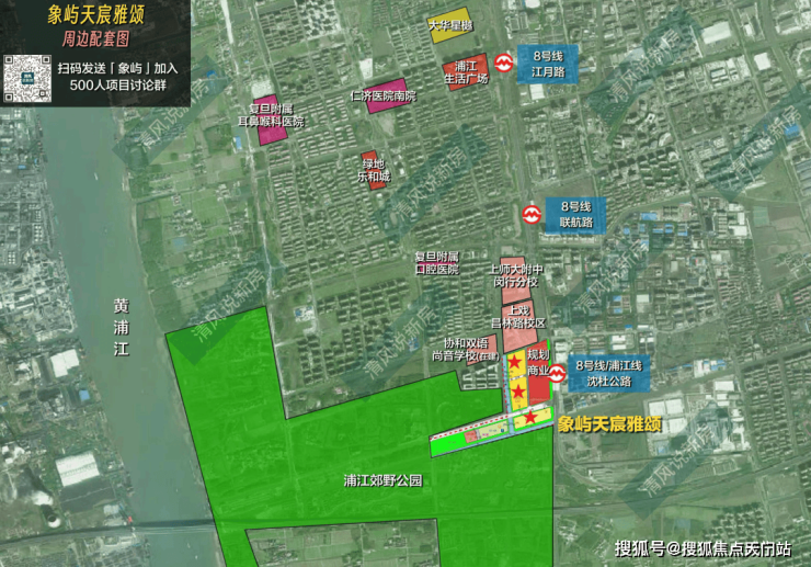 项目北侧2-3KM有著名的三甲医院资源(仁济医院南院、复旦耳鼻喉医院)和大型商业配套浦江城市生活广场,但缺点也是这些地方必须从小区开车才能到,在当下时点项目周边步行范围内的商业、医疗配套都比较缺乏,一些规划需要时间来兑现了。