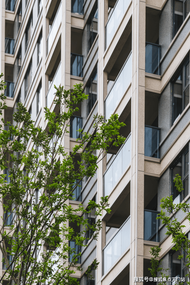 外立面整体形制优雅端正,时尚轻盈,简约有力,横向和竖向金属线条搭配。以简洁现代的线条表达立面感,加上对称的美学,使得建筑整体有着十足的现代感。同时,更大的窗墙比,让每一户的采光都能保持更佳。