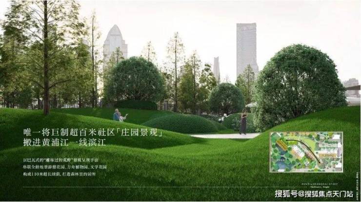 将庄园级景观搬至黄浦江畔 :打造约3万㎡立体景观与4000㎡全域架空层相互渗透的生态系统,堪称唯一将庄园级别景观置于黄浦江一线岸线的项目。