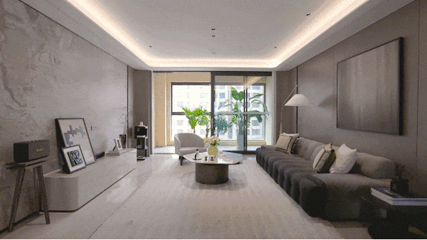 城市会客厅尺度的动区,其客厅面宽约4.5米,向南衔接阔景阳台,加上多维观景面,将古北美景尽收眼底。