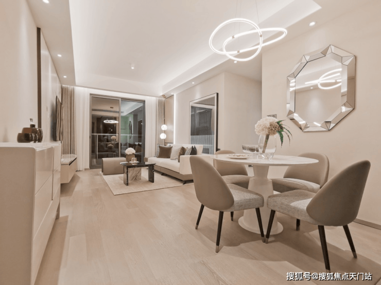 「灿耀星城」的装修标准同样可圈可点,公共区域+卧室采用了日立中央空调、全屋地暖、松下新风系统,博世智能门锁,入户玄关柜、实木复合地板、low-E三玻两腔内置百叶窗。