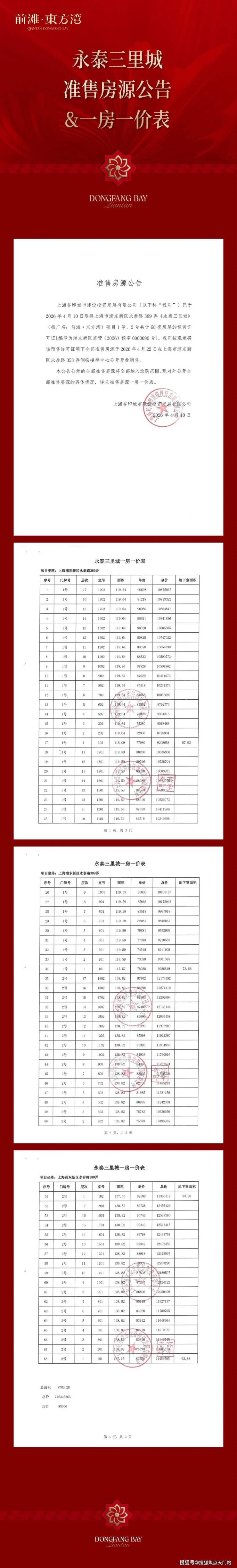 【前滩·東方湾】与永泰三里城一脉相承,是超30万方河滨大城,是三林全新的地标!开发商打造过上海多个封面作品,如东方城市花园、东方淡水湾花园等,累计开发项目超20个!