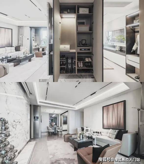 入户后,所有玄关柜均为交付标准,还精心配置了“除臭精灵”,下方更预留了扫地机器人的空间,为日常起居提供便利;像传统的豪宅三大件,项目采用大金品牌中央空调地暖两联供,以及格兰斯柯的新风。