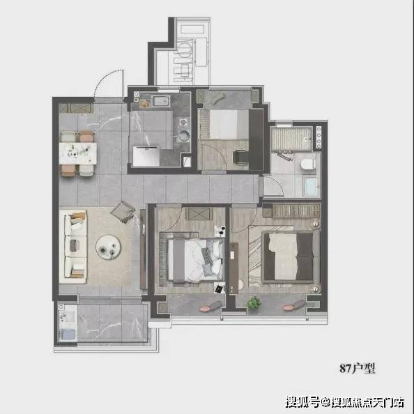 建面约87㎡3房,做到了三开间朝南设计,整个户型几乎没有浪费面积。实现空间节约、居住升级等美好体验。
