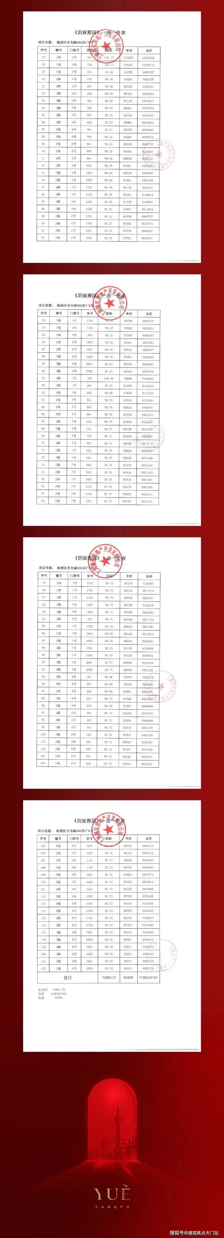 一房一价表及认购细则如下