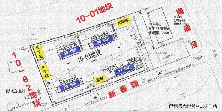 10-03地块:拟建2栋15F高层住宅、2栋16F高层住宅、以及若干配套用房。