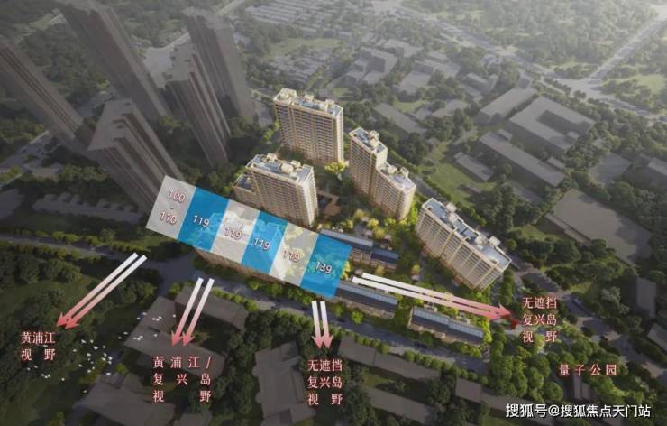 未来从小区侧门就能直接进公园,于业主,不仅多了个休闲天地,更相当于“降低了项目实际居住密度”,东侧视野开阔,还能和复兴岛景观无缝衔接。