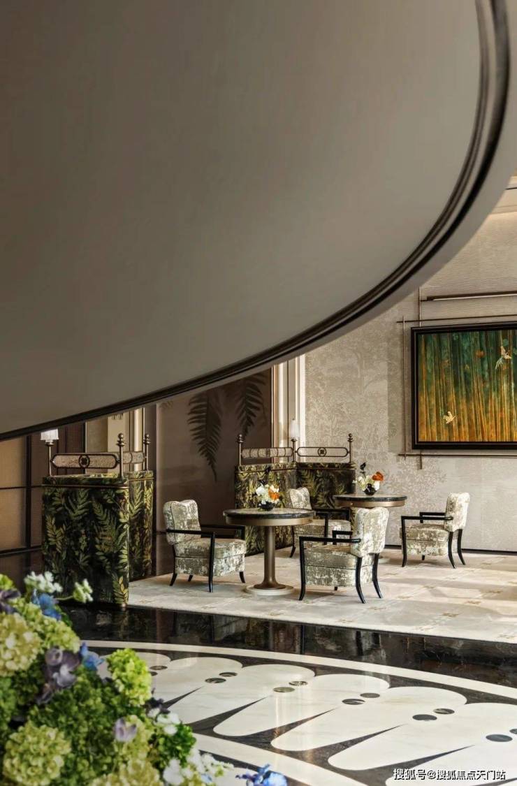 空间材质温暖而丰富,细节处的花卉元素,如镜面纹路墙面、刺绣沙发以及桌面花艺小品,共同编织出繁华深处、宾至如归的归属感与沉浸式的艺术体验。这里,是深度交流、灵感碰撞、梦想悄然落定的所在。