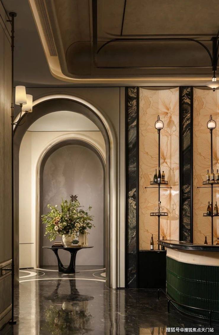 其形态糅合了东方山水的蜿蜒气韵与西方建筑的结构力量,刚柔并济,成为空间中无声却有力的叙事者,预示着深入探索的雅致旅程。