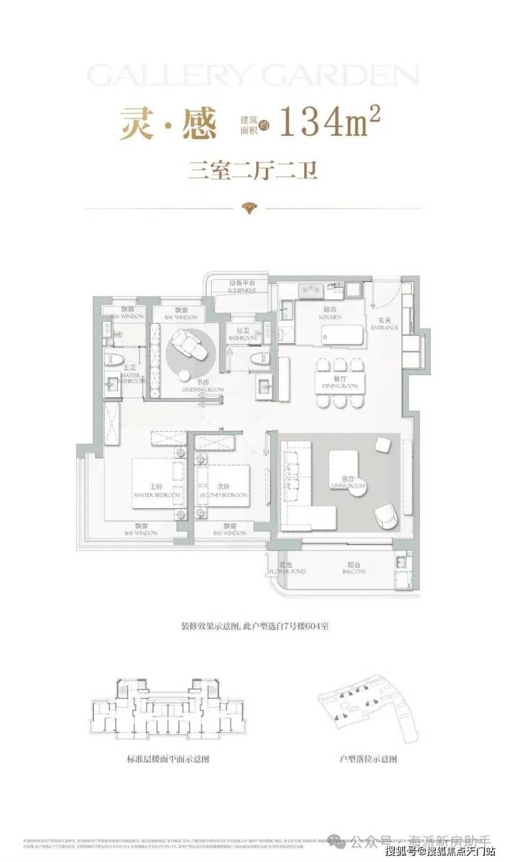 建面约134㎡3房2厅2卫, 主力总价约1500-1700万,户型设计在上一个户型的基础上将各功能间尺度升级的同时,也做了一些更人性化的迭新。