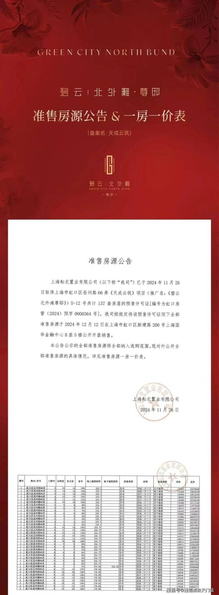 【一房一价表】
