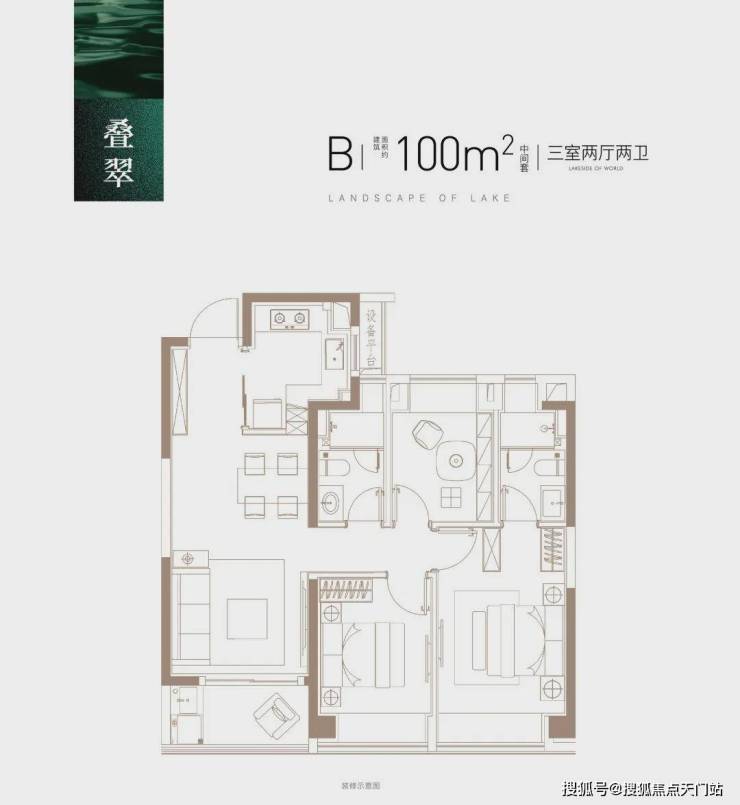 建面约100㎡B户型(中间套)▼