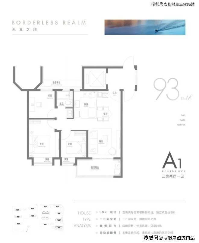 95㎡三房:U型厨房+南向双阳台,无连廊设计,得房率超78%。