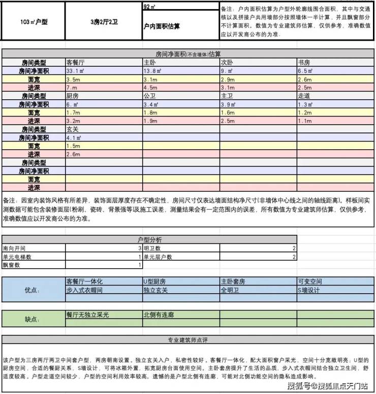 建面约103方A户型: