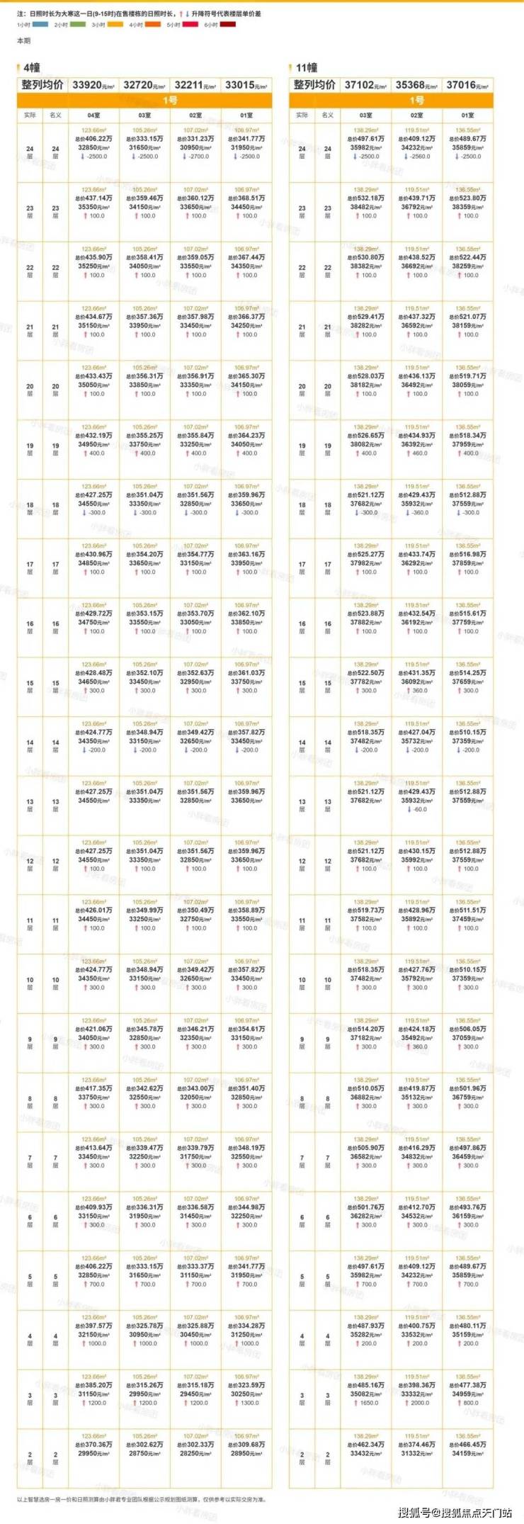 上一轮项目推出四开房源,分别是4、11号楼,建面约103方、109方、120方、137方、138方户型都有,均价3.4672万/平,还剩少量房源线下可捡漏。