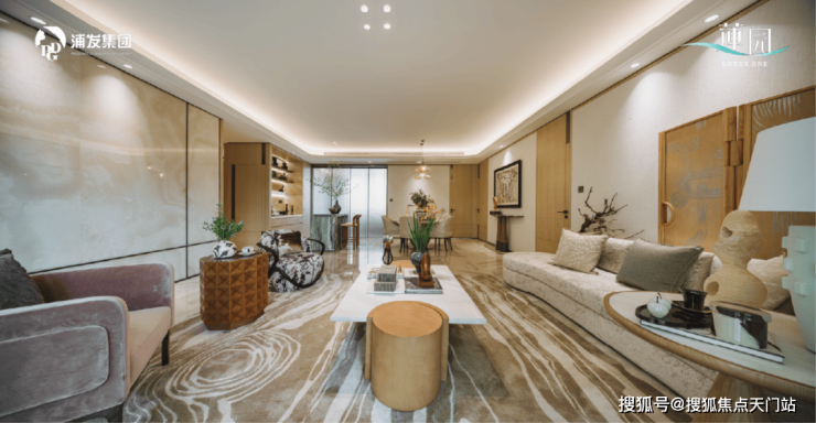 社区园林上定制了 两大轴线、五重礼制归家、六大摩登生活场景等。 泛会所客厅,可林下赏莲会友。