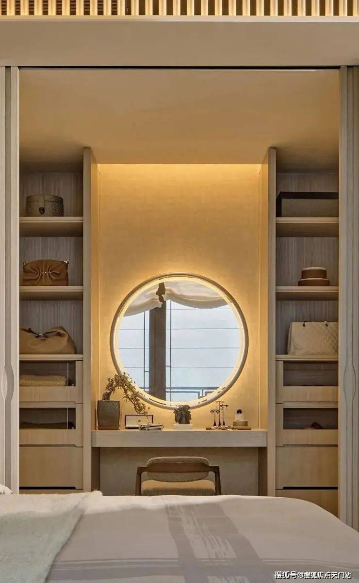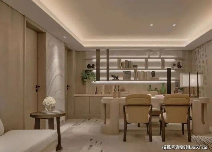 夹层被安置成了书房,安静、雅致,为了显露对生活的慰藉,像是把精神世界现实化的地方,展现修养、审美甚至家风。也如三毛在《送你一匹马》中所说:“许多时候,自己可能以为许多看过的书籍都成过眼烟云,不复记忆,其实他们仍是潜在的。”