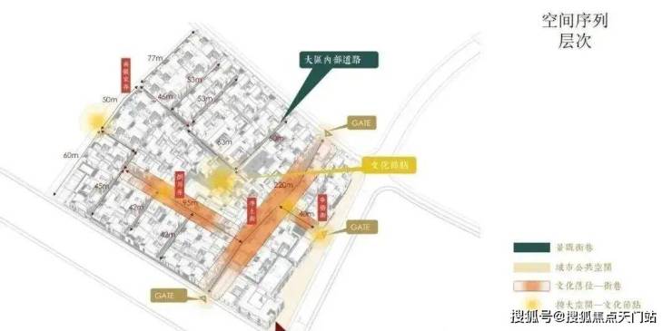士林润园社区规划可分为蓬莱路城市公共景观以及社区内部景观两个部分,其中市政绿地衔接于上海2035城市总体规划中“蓝绿丝带”的上位条件要求,社区内部街巷空间形成空间序列形成递进的层次,将归家体验的序列依次展开,形成城市街道→入口(一级门户)→街巷→节点空间→里弄门(二级门户)→合院入户(三级门户)的方式,基本可保证大多数住户可体验到两重以上的空间递进。