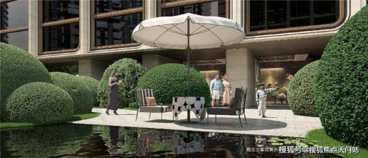 当然,在家里是景观,下楼就是公园,下面这种南侧花园人视角的示意图,是不是让你一秒来到浪漫的法式公园!