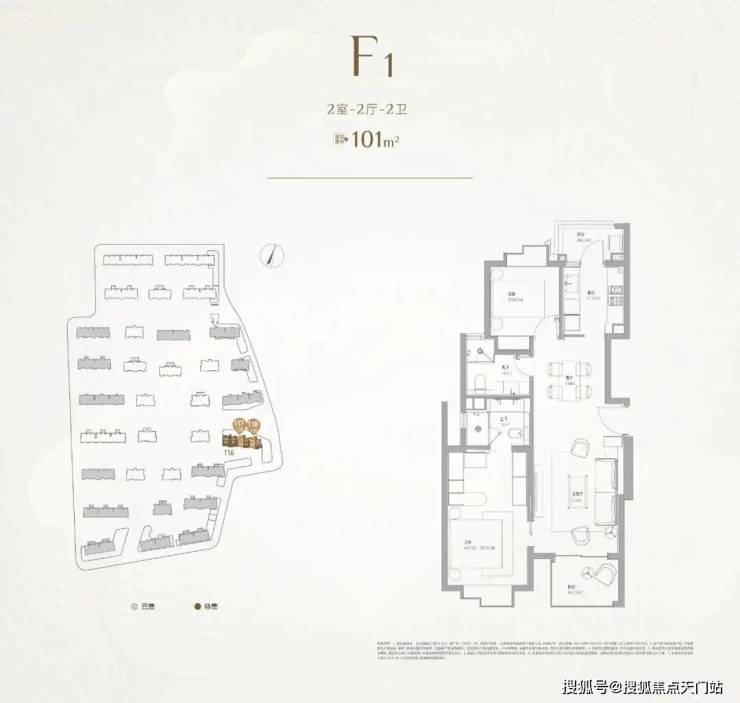 建面约101㎡2房2卫,LDK一体化设计;主卧套房配置步入式衣帽间+独立卫浴;南北双阳台系统,实现270°采光通风。