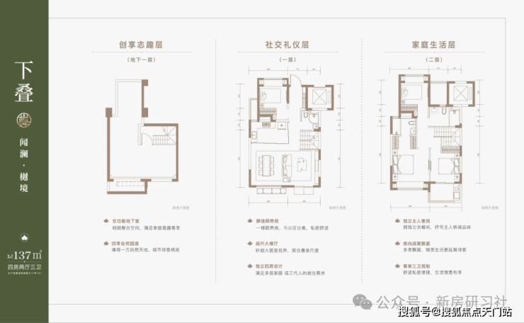 建面约137㎡下叠,四房两厅三卫全能格局,非常适合二娃家庭以及三代同堂。