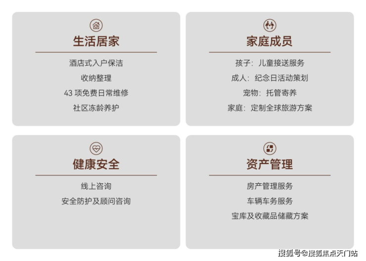 空间设计的目的是将空间交还给人,承载生命的欢愉与丰盛。古北99以前瞻性的视野,对古北的生活方式进行深度迭代升级,汲取世界奢华酒店基因,从时间、空间、私属三个维度出发,依据280余项标准化服务细则,打造自然无痕的服务内容;并充分考虑当代高净值业主需求,提供日常居家服务、健康安全、资产托管等增值服务,如入户保洁、儿童校车点接送、宠物托管、工程43项免费日常维修等,妥帖照顾每个生活细节。
