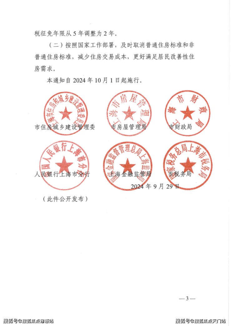上海深入贯彻落实党中央、国务院决策部署,适应房地产市场供求关系的新变化,推动构建房地产发展新模式,加快建立租购并举的住房制度,加快构建房地产发展新模式,因城施策更好满足居民刚性住房需求和多样化改善性住房需求,促进房地产市场平稳健康发展。经市政府同意,9月29日,市住房城乡建设管理委、市房屋管理局、市财政局、市税务局、人民银行上海总部、上海金融监管局等六部门联合印发《关于进一步优化本市房地产市场政策措施的通知》(以下简称《通知》)。《通知》自2024年10月1日起施行。