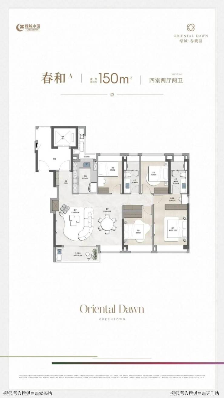 绿城·春晓园售楼处预约电话,请拨打400-1787-138☎☎√√「春和A丨 150㎡ 4房2厅2卫」横厅 两南两北