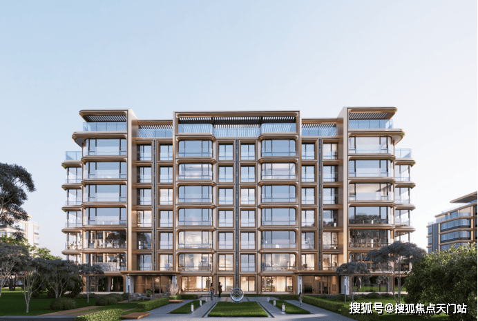 立面设计极具辨识度,摒弃传统风貌复刻,以 香槟金色铝板+玻璃+天然石材为主材,嵌入宫廷珐琅工艺,还原江水流动感,大面积玻璃幕墙搭配 270°环幕视野,将滨江景观最大化引入室内,颜值与质感双在线。