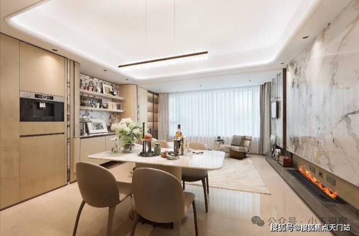 弧形天花板吊顶提升空间柔和感,营造整体大气、精致的居家氛围。