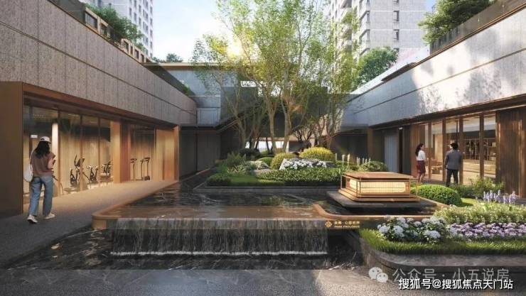 从开启酒店式门扉,到引水入园的奢石对景,再到树影繁花下的水声庭院,
