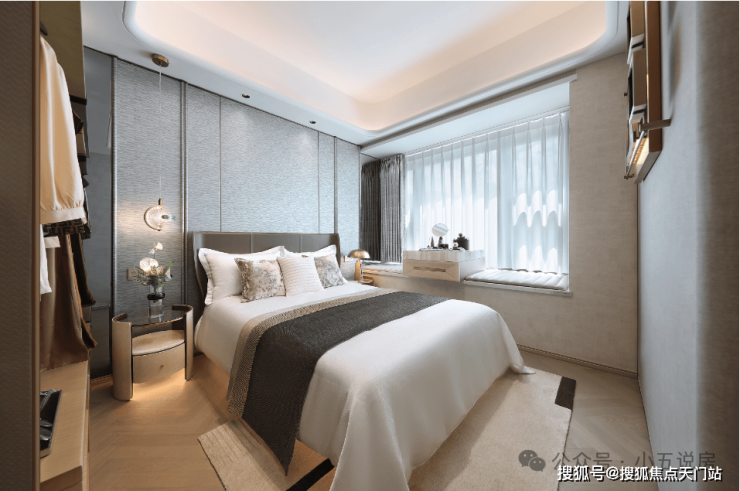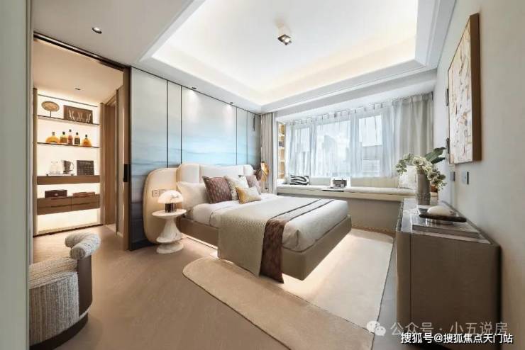 · 主卧套房:位于户型最内侧,私密性强。可轻松容纳1.8米大床与衣柜,搭配飘窗,增加采光与休闲空间,赋予主人充分的尊贵感。