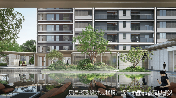 沿水境四周则融合现代人生活场景,打造集会客、办公、书吧、艺术、休憩五大功能于一体的中芯聚院。