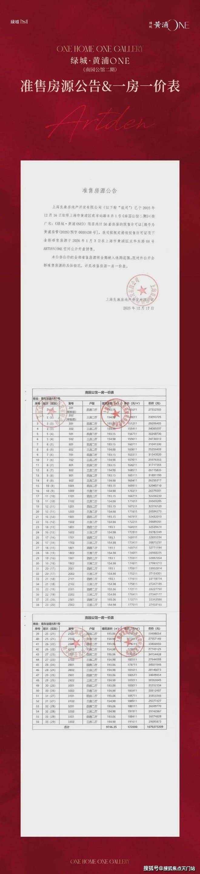 上海市黄浦区绿城黄浦 ONE 官方网站公示信息