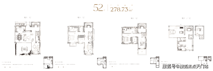 建面约240㎡的联排产品面宽10米,也是将产品大面宽短进深的产品特色淋漓尽致的展现。