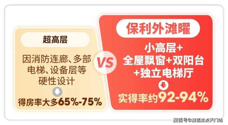 超高层住宅因消防连廊、多部电梯、设备层等硬性设计,公摊率普遍高达约25-35%,得房率大多仅 65%-75%;