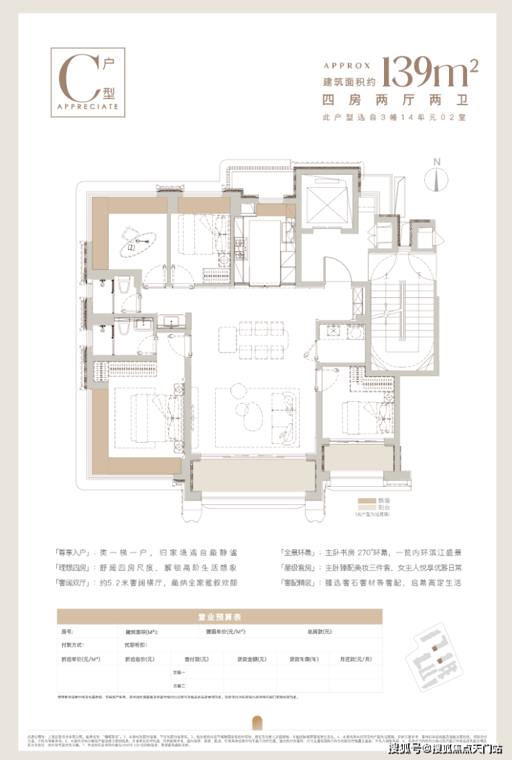 建面约139㎡天幕四房!