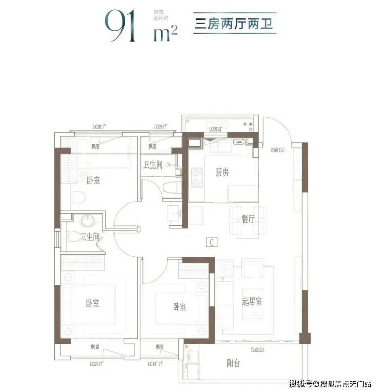 建面约91㎡-121㎡ 3房2厅2卫;这几个户型都是3房的设计,满足想一步到位的购房者。3开间朝南+客餐厅连通阳台+全卧室飘窗,以及套房式主卧设计+2卫,即使是三代同堂,也能让生活从容。