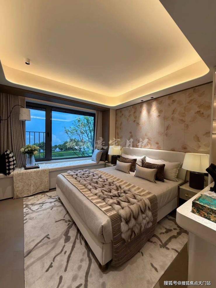 项目建面约143㎡户型的设计无疑是市场一流水准,一梯一户保证私密性和尊崇感;四开间朝南+大宽厅,采光效果爆棚;主卧贯穿南北套房设计,南北都有飘窗,舒适度可圈可点。