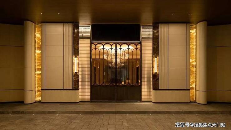 再仔细看, 顶部香槟金色格栅塔冠和壁柱的色调,可谓审美拉满 !还有基座, 大面积石材搭配艺术玻璃和古铜色金属窗框,再加上奢石、艺术的点缀,定制高阶归家体验感 。如此独具辨识度的外立面, 未来必定刷新区域天际线,成为徐汇一道璀璨夺目的风景。