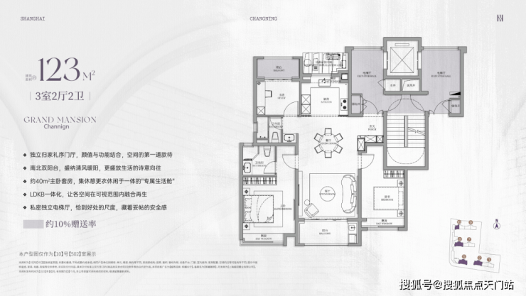 项目建面约123㎡3房,属于非常经典的飞机户型。