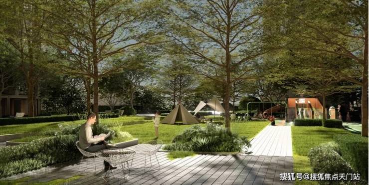 温润木质的瞭望台、微度假卡包空间、条石分割的秩序草阶组团呈现多功能共享空间,主题聚餐、生日 Party、户外影院、演艺活动……满足全龄段业主潮流追求。