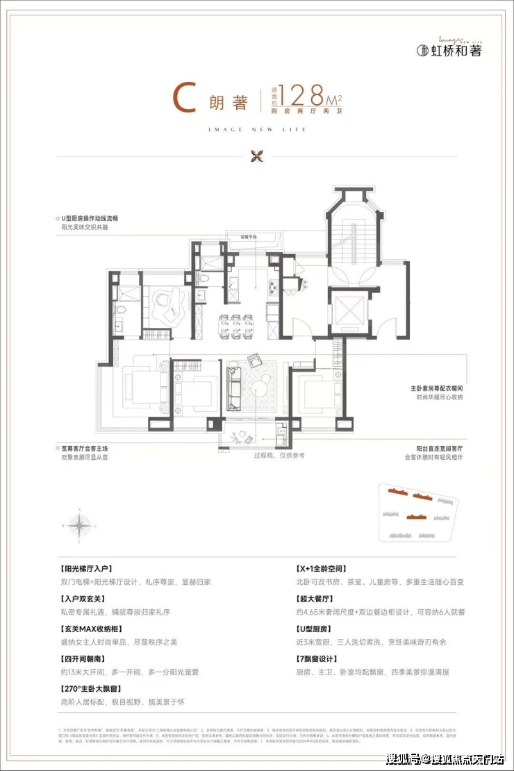 建面约128㎡4房稀缺改善户型,灵活性强过去很长一段时间,由于土地端7090政策限制,新房产品绝大部分以百平米左右刚需产品为主,而保利虹桥和著此次将推出建面约128㎡稀缺舒适四房,本身就是一次难得的改善机遇,更何况该户型设计非常亮眼, 四开间朝南设计,尽可能将更多阳光引入室内, 主卧270度飘窗+南北通透大套房设计,同级别户型中十分罕见,充分满足舒适度和身份感。