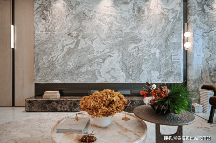材质质感上,项目同样不吝投入。电视背景墙采用一整面安第斯雪景天然大理石,次卫背景墙套口选用雪山银狐岩板,墙面大面用材为世纪冰玉;从玄关、餐厅到餐边柜,立面均采用影木木饰面,温润质感与高级颜值兼具,每一处细节都彰显品质匠心。