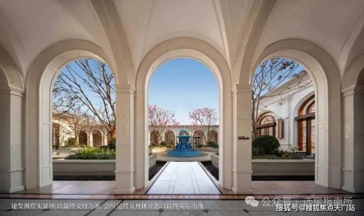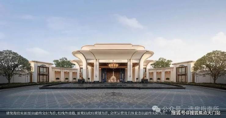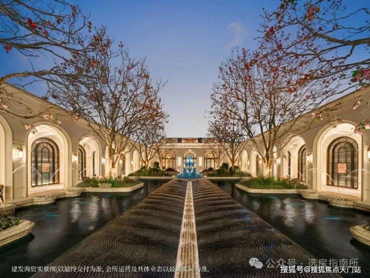恢弘门头,豪气满满,宽约 65 米, 14 米挑高白玉兰造型穹顶,搭配水景喷泉营造归家仪式感。