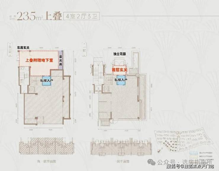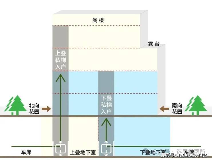 首先,上叠是北向 私享入户花园,独门独户,室内私家电梯 ,尊崇感与私密性都有保障。