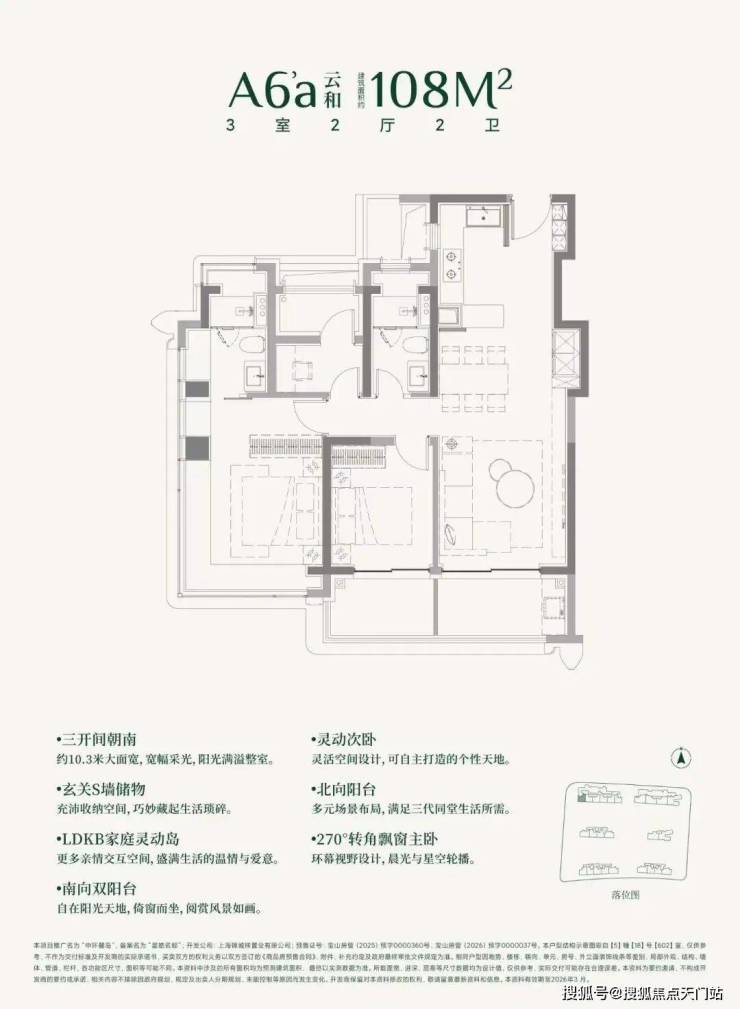 建面约108㎡3房的三阳台面积就高达约13㎡。(阳台仅附赠一半面积)