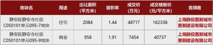 新静安地块0溢价成交,老静安地块163轮竞价才落槌,楼面价超11.4万/㎡。