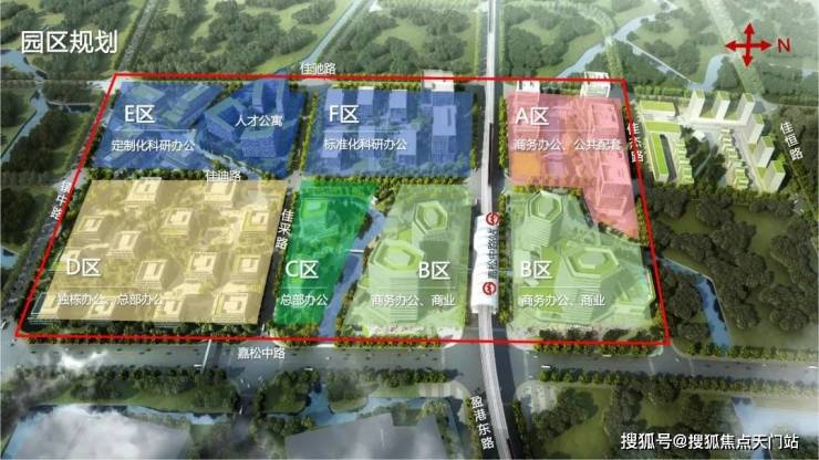 市西软件园核心位置就在嘉松中路站两侧,这里正打造 漕河泾赵巷科技绿洲,一共六个地块