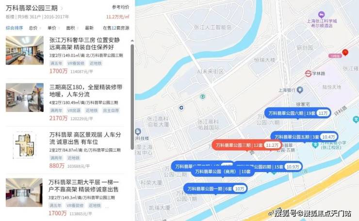 说这话是有依据的,万科翡翠公园就是一个典型案例,被张江园区包围,是张江高知人群改善置业的香饽饽,你再看一下它现在的价格: